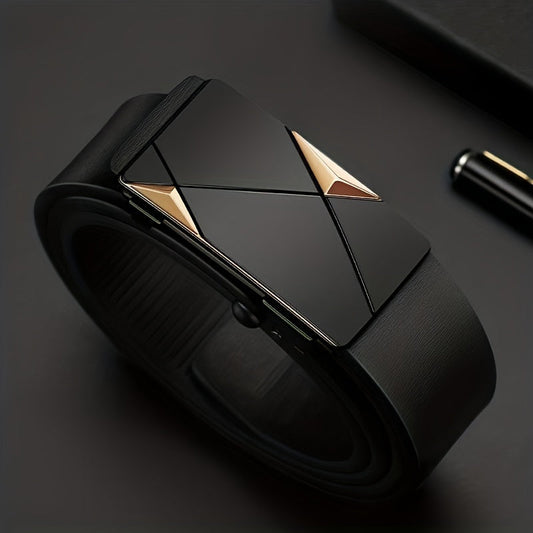 Men’s Genuine Leather Belt with Automatic Buckle – Classic Adjustable Cowhide Waist Belt