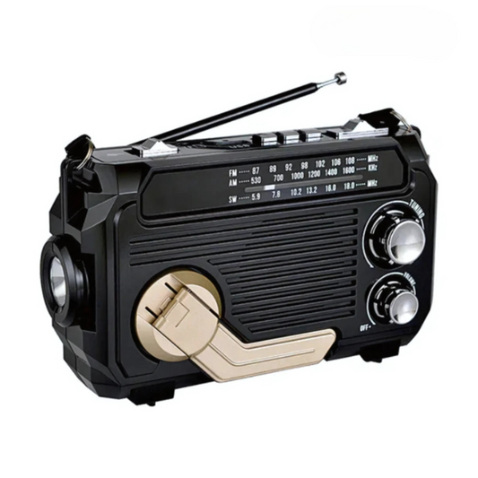 SafeWave Emergency Radio with Built-in Power Bank – Hand Crank, Solar & USB Charging, AM/FM, LED Torch & SOS Alert