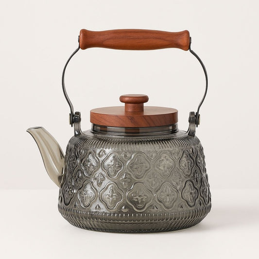 Zoie Glass Teapot with Infuser – Heat-Resistant 1000ml Borosilicate Kettle with Wooden Handle