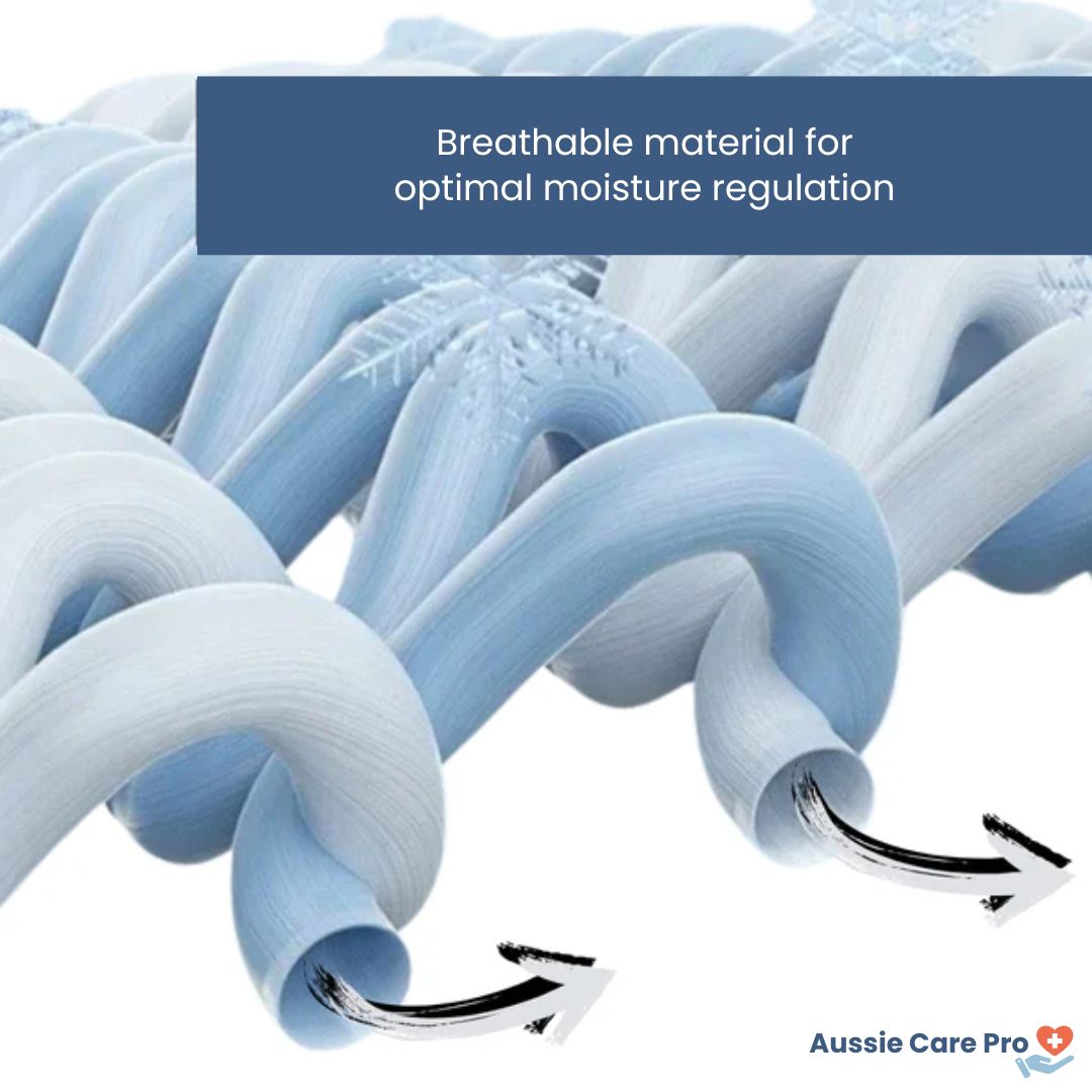 The Aussie Care Pro Cooling Blanket uses heat-dissipating fabric that instantly absorbs and releases body heat, creating a naturally cooler sleeping surface.