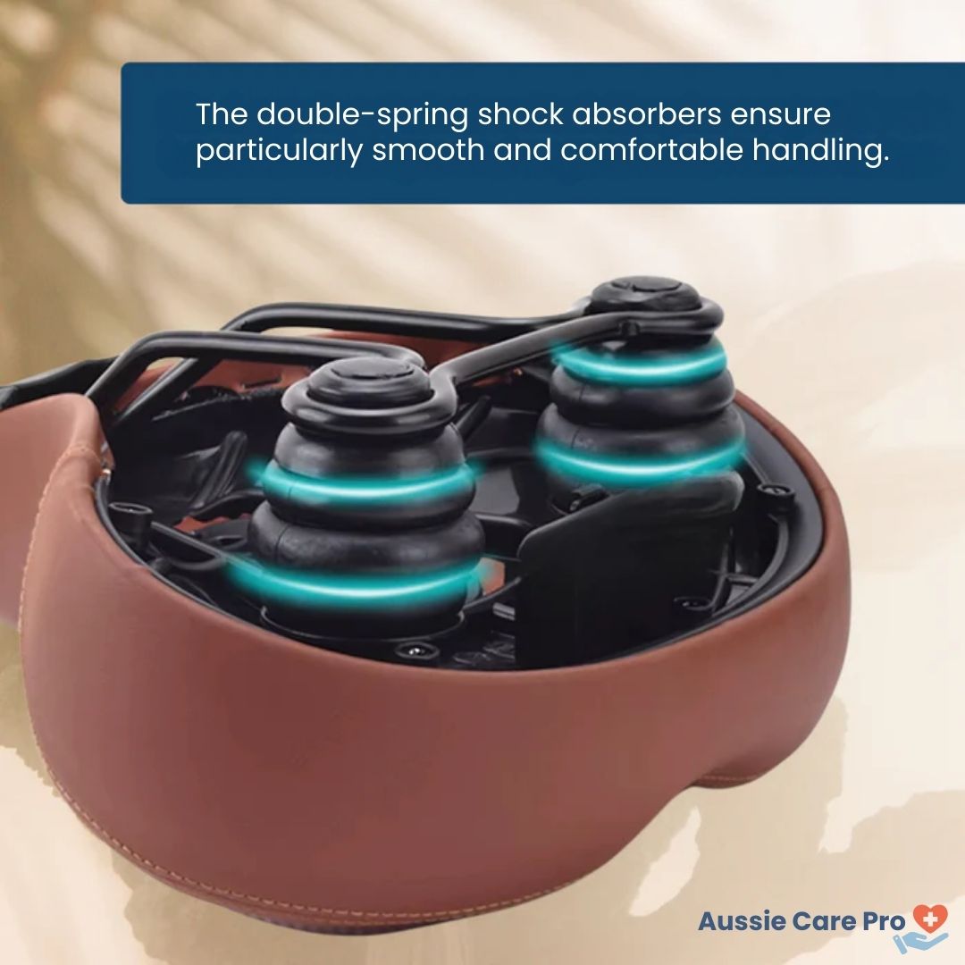 Crafted from premium PU leather, the Aussie Care Pro Bike Seat is water-resistant, wear-resistant, and built for long-lasting use. No matter the weather—rain, sun, or dusty roads—you can count on a dry, stable, and slip-resistant ride.