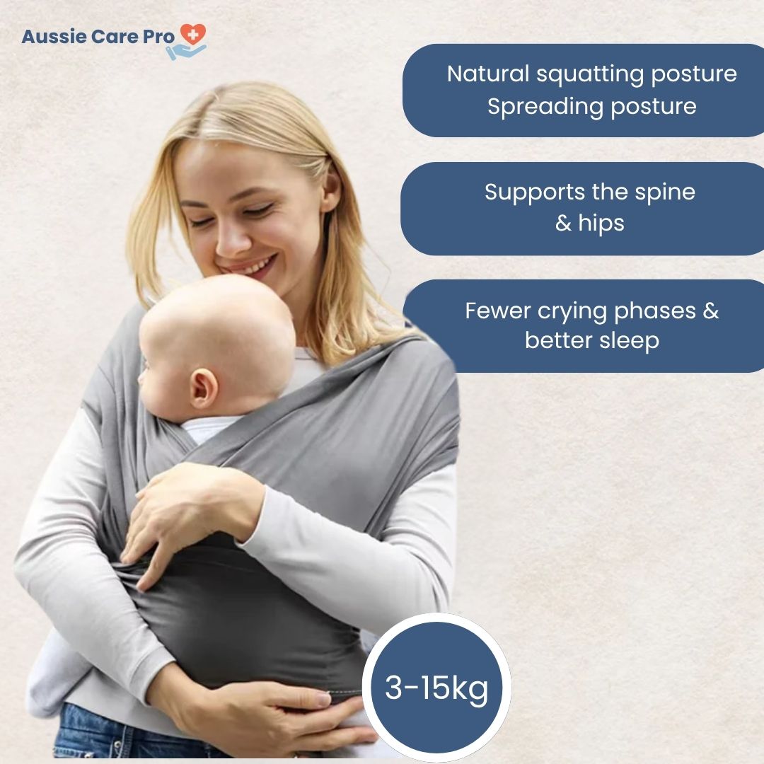 Experience comfort and closeness with the ErgoWrap Baby Sling by HealthyCarry. It offers ergonomic support for your baby and relief for your back, all without complicated wrapping. The adjustable design ensures your baby always sits in the healthy M-position, promoting optimal hip development and secure bonding.