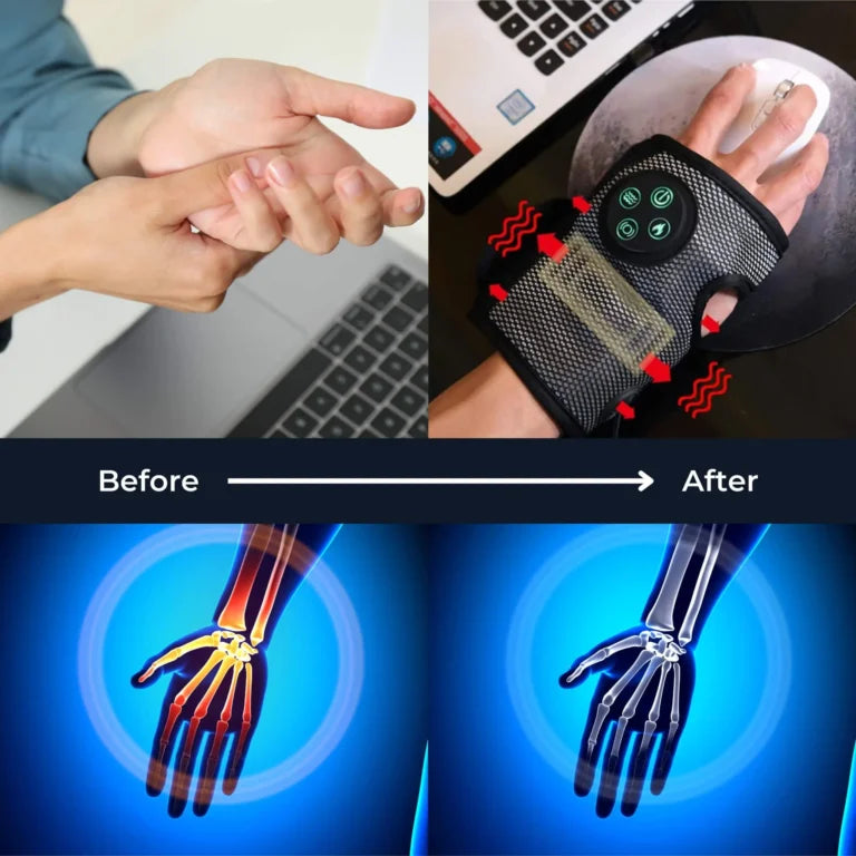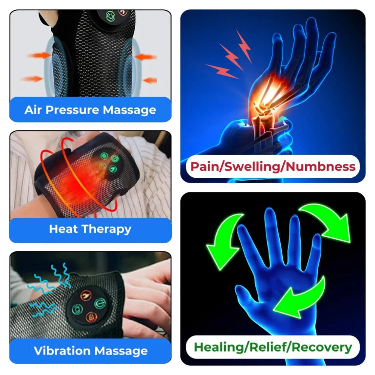 Wrap it around your hand or wrist, secure it comfortably, choose between air compression, vibration, and heat settings, then relax as it provides soothing relief in just 10–20 minutes.