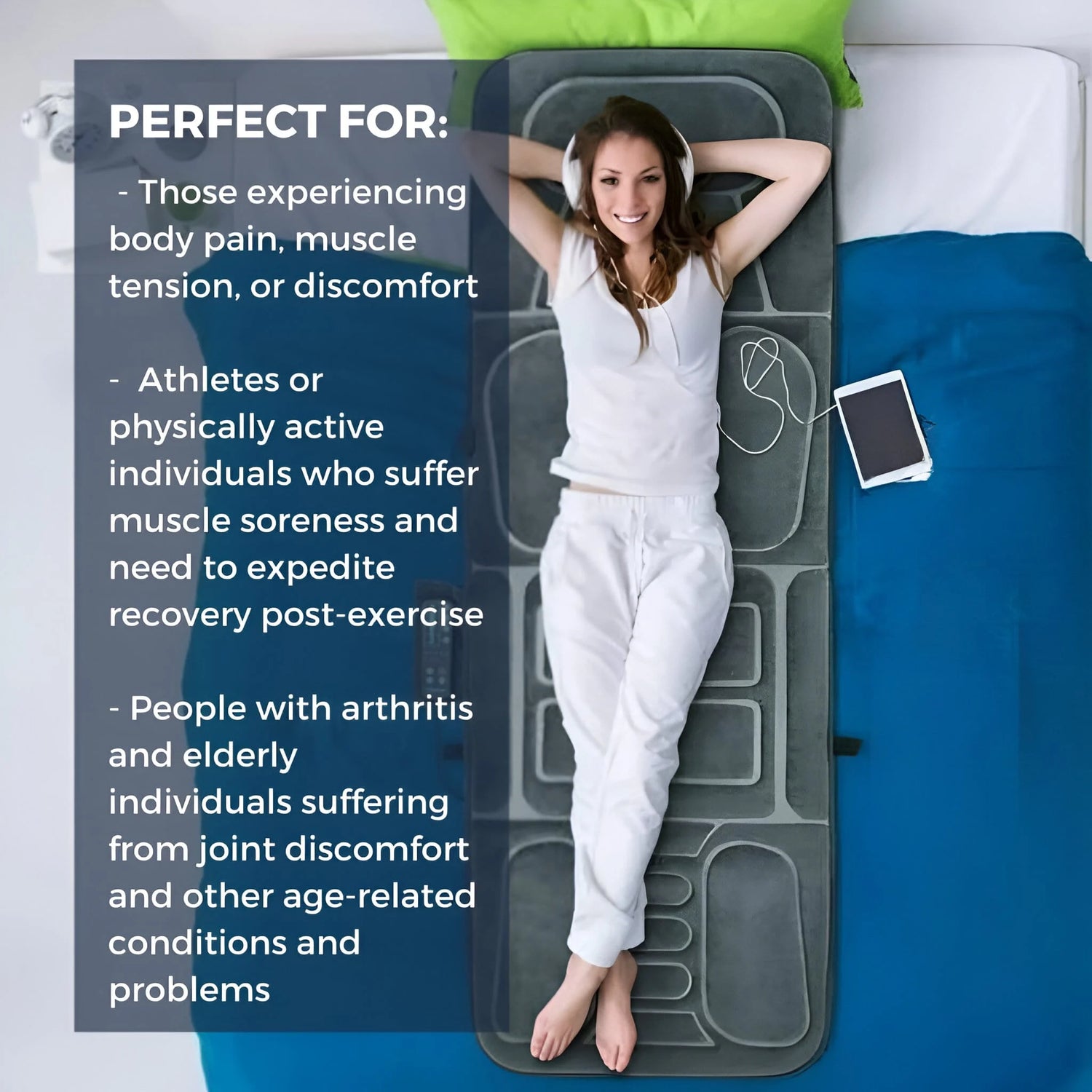 Equipped with 10 vibration motors and soothing heat zones, the mat targets key pressure points across your body. The combination of massage and heat penetrates deep into muscles, reducing stiffness, easing soreness, and boosting circulation for lasting relief.