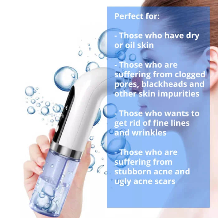 The device uses water and suction to achieve glowing skin. The use of water softens the skin's outer layer while the vacuum suction exfoliates the other layer of skin and removes dead skin cells, excess oil, blackheads, and other skin impurities.