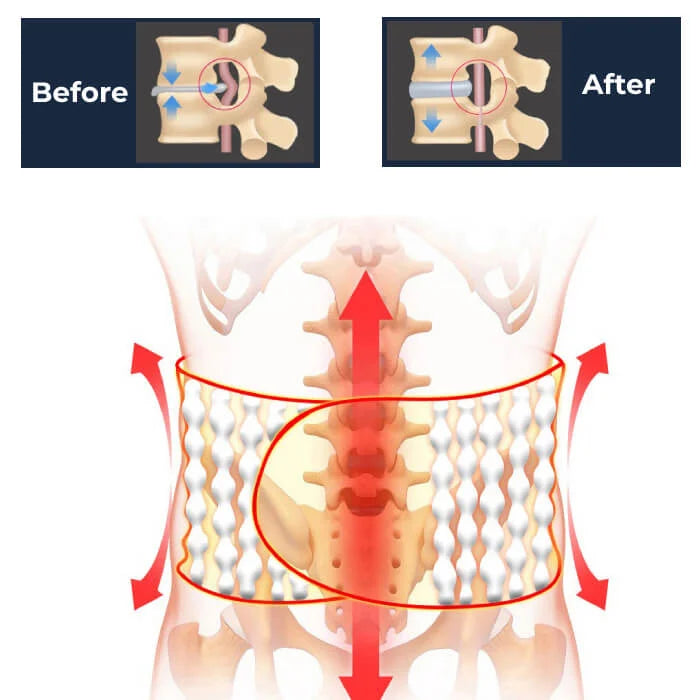 The belt inflates with air to create gentle traction, stretching the spine and relieving disc and nerve pressure. This process helps with conditions such as herniated discs, degenerative disc disease, sciatica, and general lumbar pain.