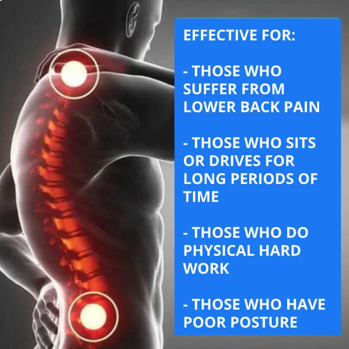 Ideal for those with chronic back pain, posture issues, muscle stiffness, or jobs requiring long hours of sitting, standing, or driving. Suitable for both men and women looking for effective and non-invasive back relief.