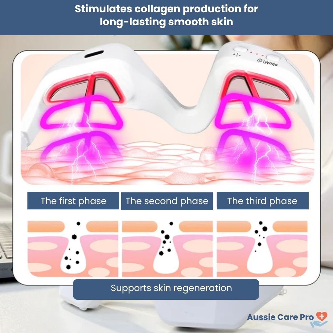 LuminaLift uses a powerful combination of EMS (Electro-Muscle Stimulation) and red light therapy to target puffiness, fine lines, and dark circles. It boosts circulation and stimulates collagen production for long-term rejuvenation.