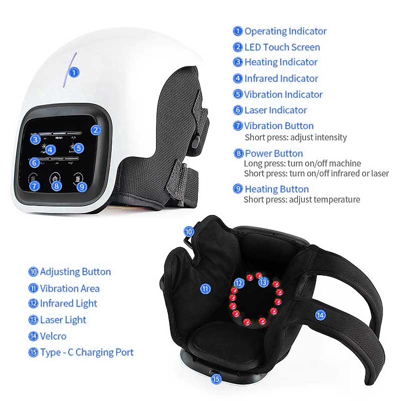 Unlock the power of Multi-Point Heat Therapy with our advanced Knee Massager. Specifically designed with strategically placed therapy zones on your knee, it effectively addresses multiple pain issues simultaneously. Utilizing 11 built-in infrared lamps, gentle vibrations, thermal compresses, and laser light, it provides comprehensive relief and rejuvenation for your knees.