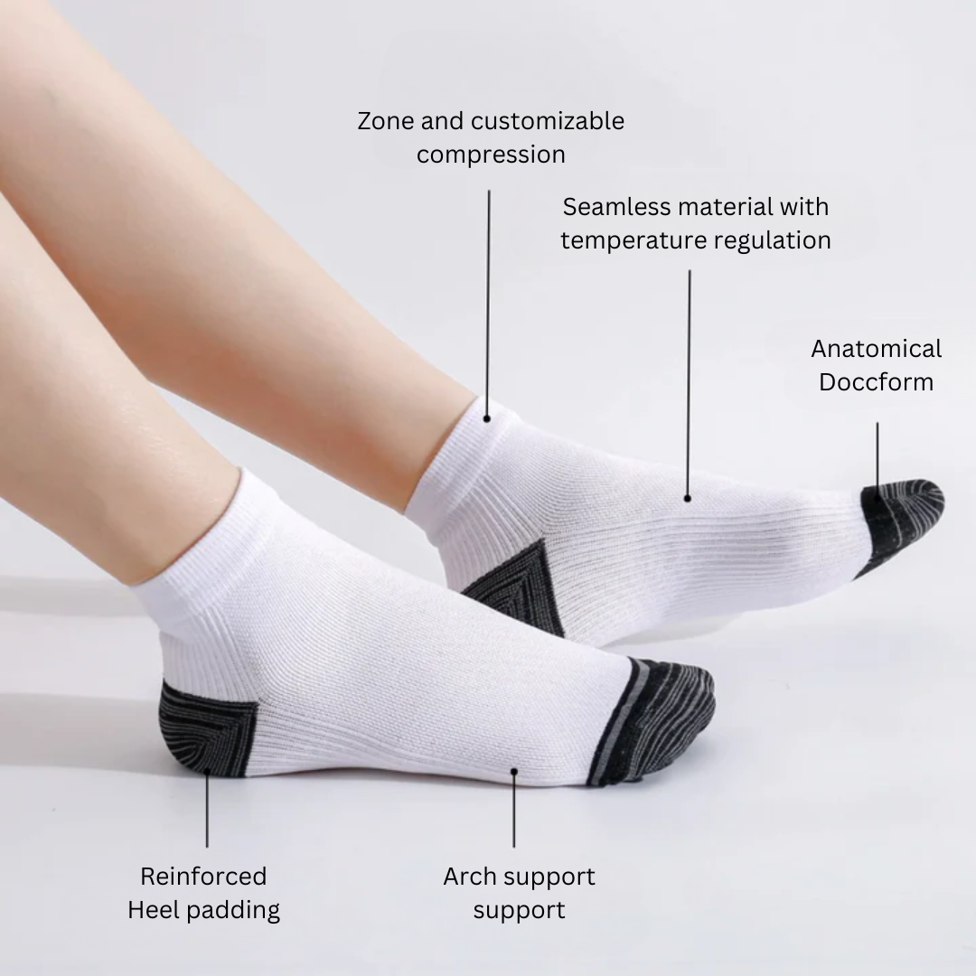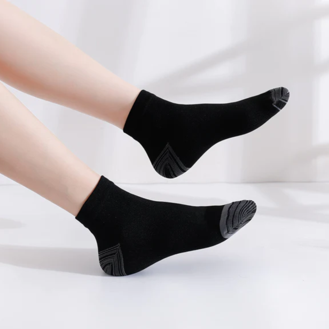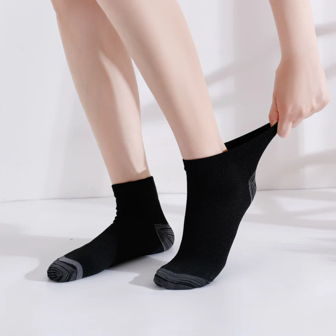 Simply put: Orthosocks Pro are compression socks you'll actually want to wear. Gone are the days of struggling with uncomfortable compression socks that are so tight they're hard to put on or cut into your flesh. Our 12-15 mmHg graduated design makes it easy to put on and take off the socks, while effectively addressing issues like varicose veins, edema, venous insufficiency, and foot pain.