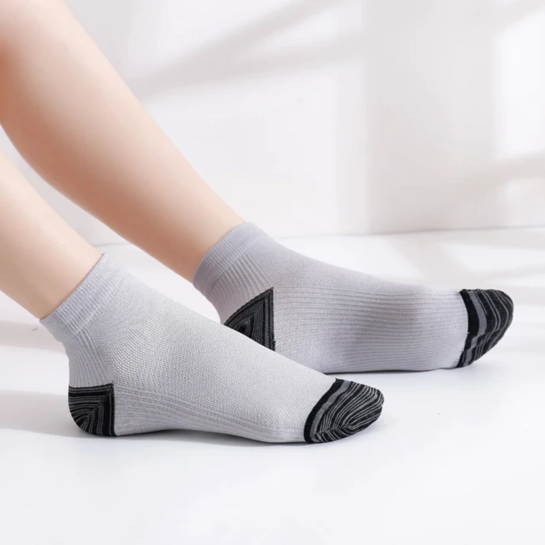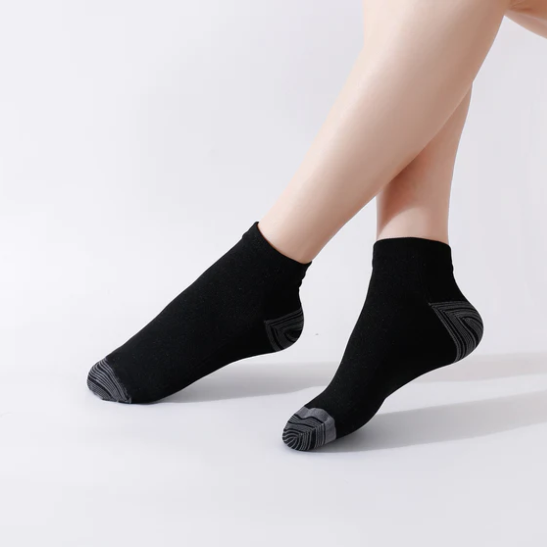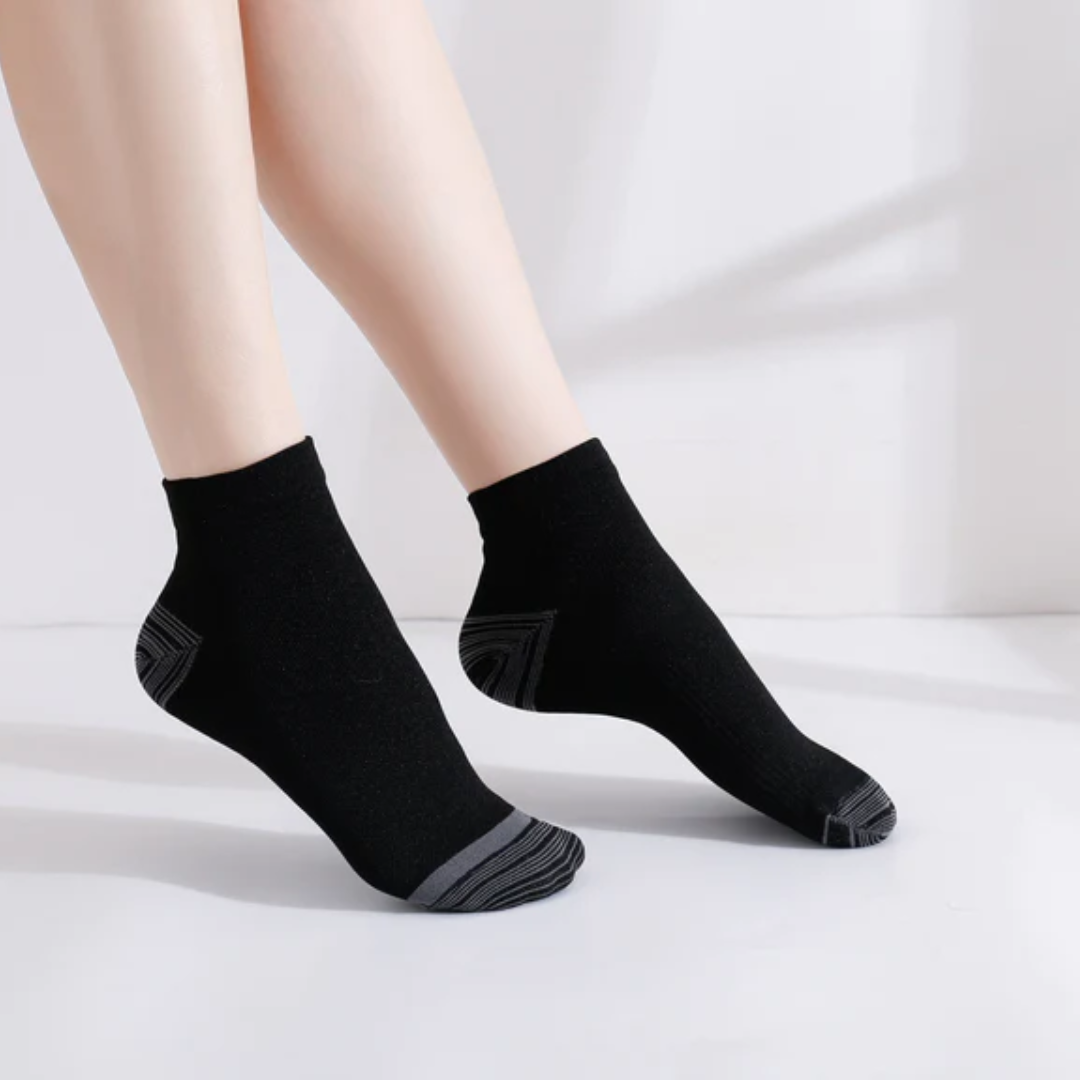 Simply put: Orthosocks Pro are compression socks you'll actually want to wear. Gone are the days of struggling with uncomfortable compression socks that are so tight they're hard to put on or cut into your flesh. Our 12-15 mmHg graduated design makes it easy to put on and take off the socks, while effectively addressing issues like varicose veins, edema, venous insufficiency, and foot pain.