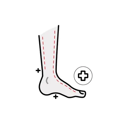 Stronger compression in the foot area allows unprecedented wearing comfort.
