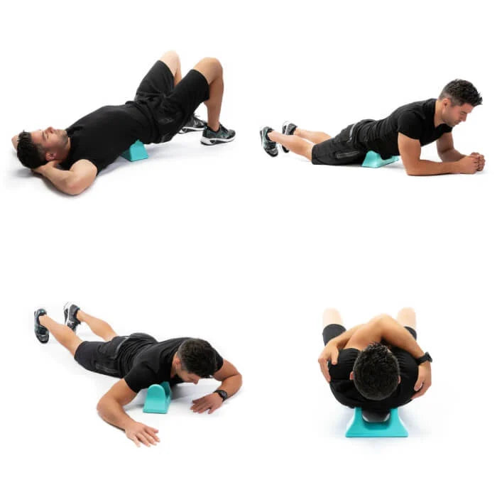 For any area you want to keep the pressure around a 5 out of 10 focus on deep breathing and hold it on that spot for about 1-5sec or 30-60sec or longer if you desire. Be smart and listen to your body. That area will start to melt and the discomfort will lessen. Once that happens stop massaging that area and either get up and move around or move to a new spot. You shouldn’t stay on the same spot longer than 60sec and you shouldn’t get bruised either means you were pushing too long and too hard.