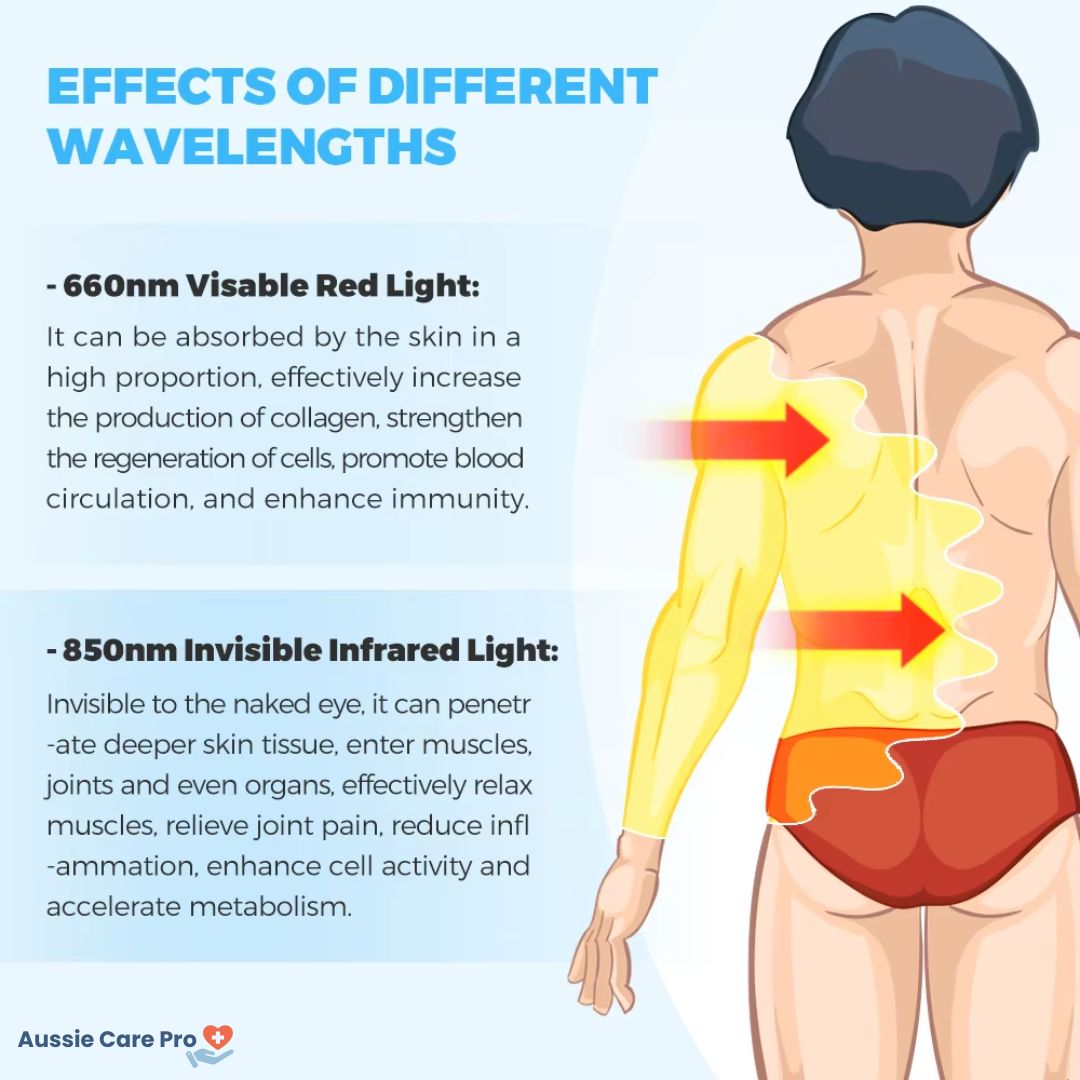 The device harnesses the power of professional-grade LED light therapy for optimal results. With its 850nm near-infrared light, it penetrates deep into your tissues, promoting recovery and repair. Additionally, the 660nm red light is absorbed by the skin tissue, supporting collagen production for healthier skin.