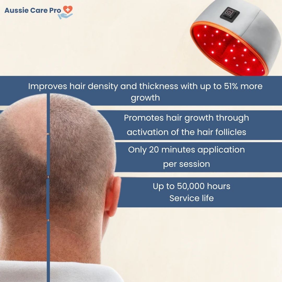 Engineered for longevity, the cap offers up to 50,000 hours of use. Safety is built-in, with an automatic shut-off after each 20-minute session and overheating protection for worry-free treatment.