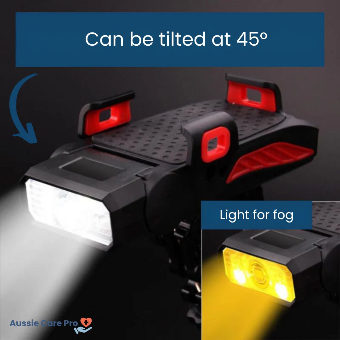 It combines a secure phone mount, an ultra-bright front light, a powerful charging station, and a loud electric bell – all in one compact device.