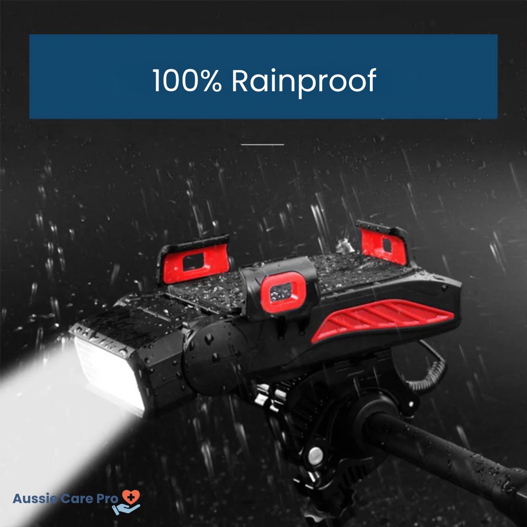 The entire unit is IPX4-rated waterproof, so you don’t have to worry about damage to your light, horn, or charging function when the weather turns unexpectedly.