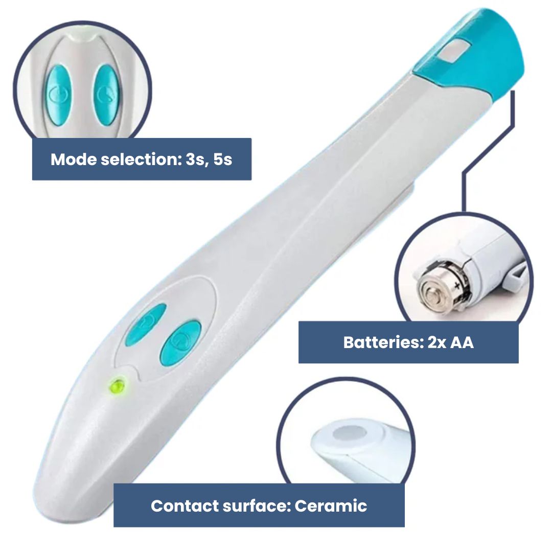A single set of batteries provides up to 300 treatments, making it a cost-effective alternative to creams and ointments.