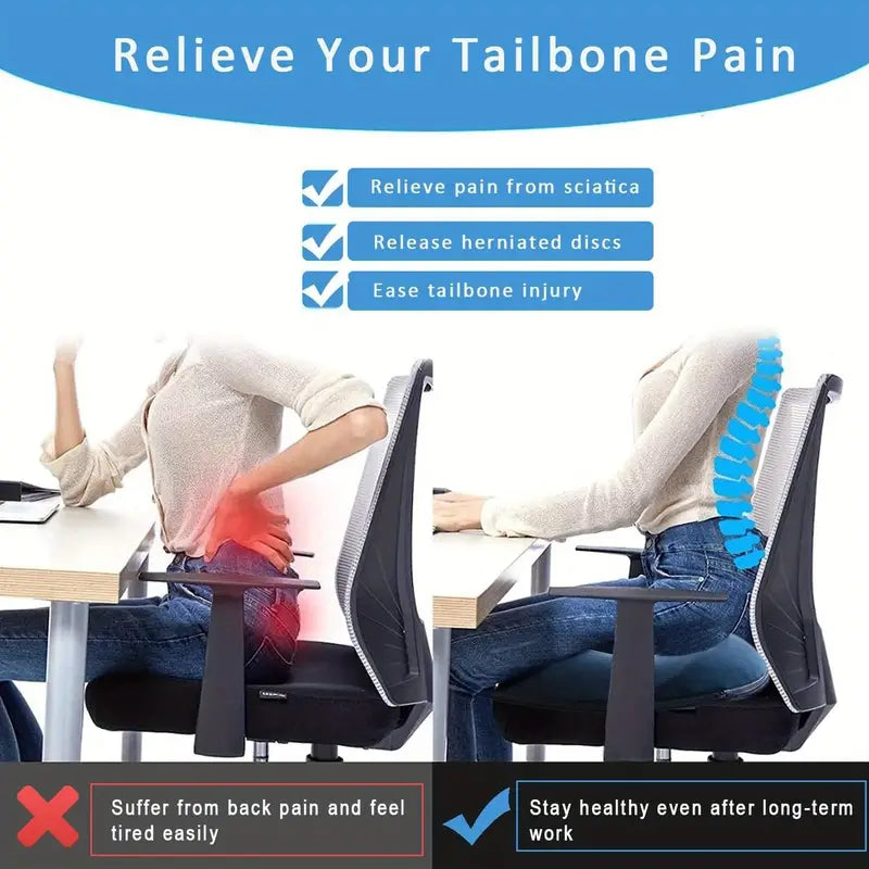 Transform your seating experience with our Orthopedic Comfort Memory Foam Seat Cushion. Designed with your comfort in mind, this cushion provides exceptional support for your buttocks and tailbone, making it perfect for long hours spent in the office, driving, or practicing yoga. Its innovative design alleviates pressure, helping to prevent discomfort from prolonged sitting while enhancing your overall posture.