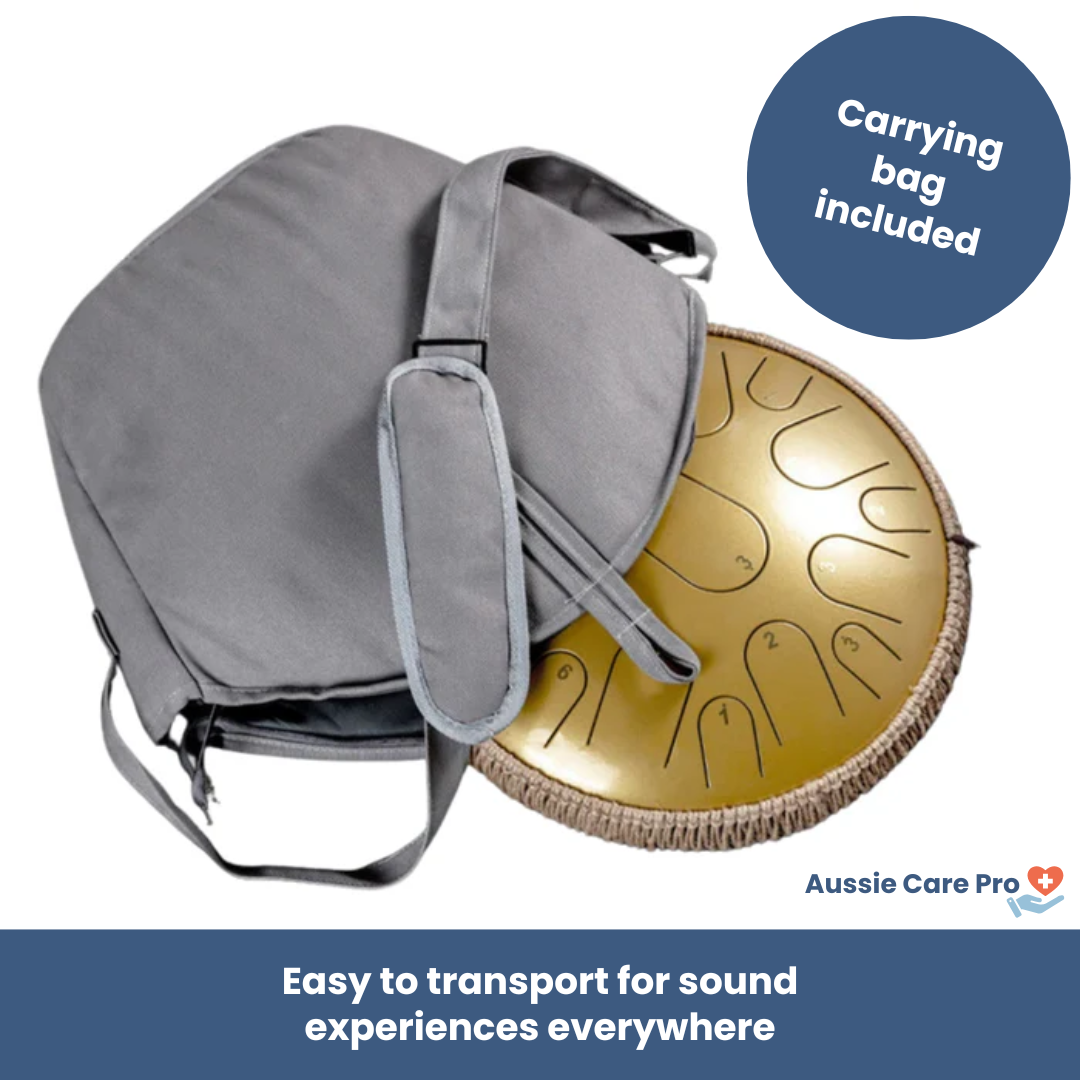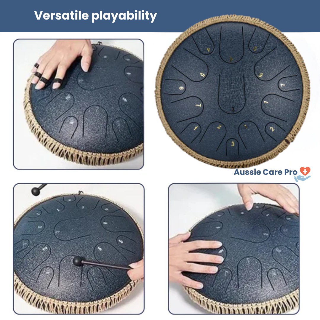 The Aussie Care Pro ZenTone Steel Tongue Drum is a beautifully crafted 15-tone percussion instrument, perfect for meditation, music therapy, and creative expression.